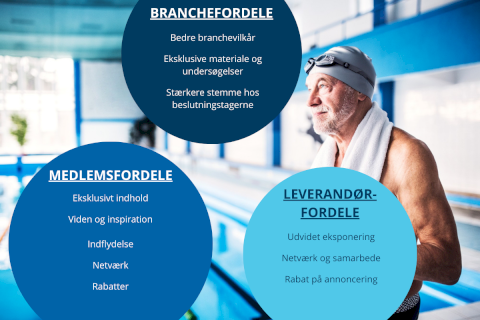 Som medlem af foreningen bliver du en del af Danmarks største og mest alsidige netværk for svømmebade, drift, teknik og lovgivning på området. Vi samler branchen, deler viden, igangsætter undersøgelser, udbyder kurser, tager de større og mere generelle kampe med politikere og myndigheder på vegne af hele branchen.